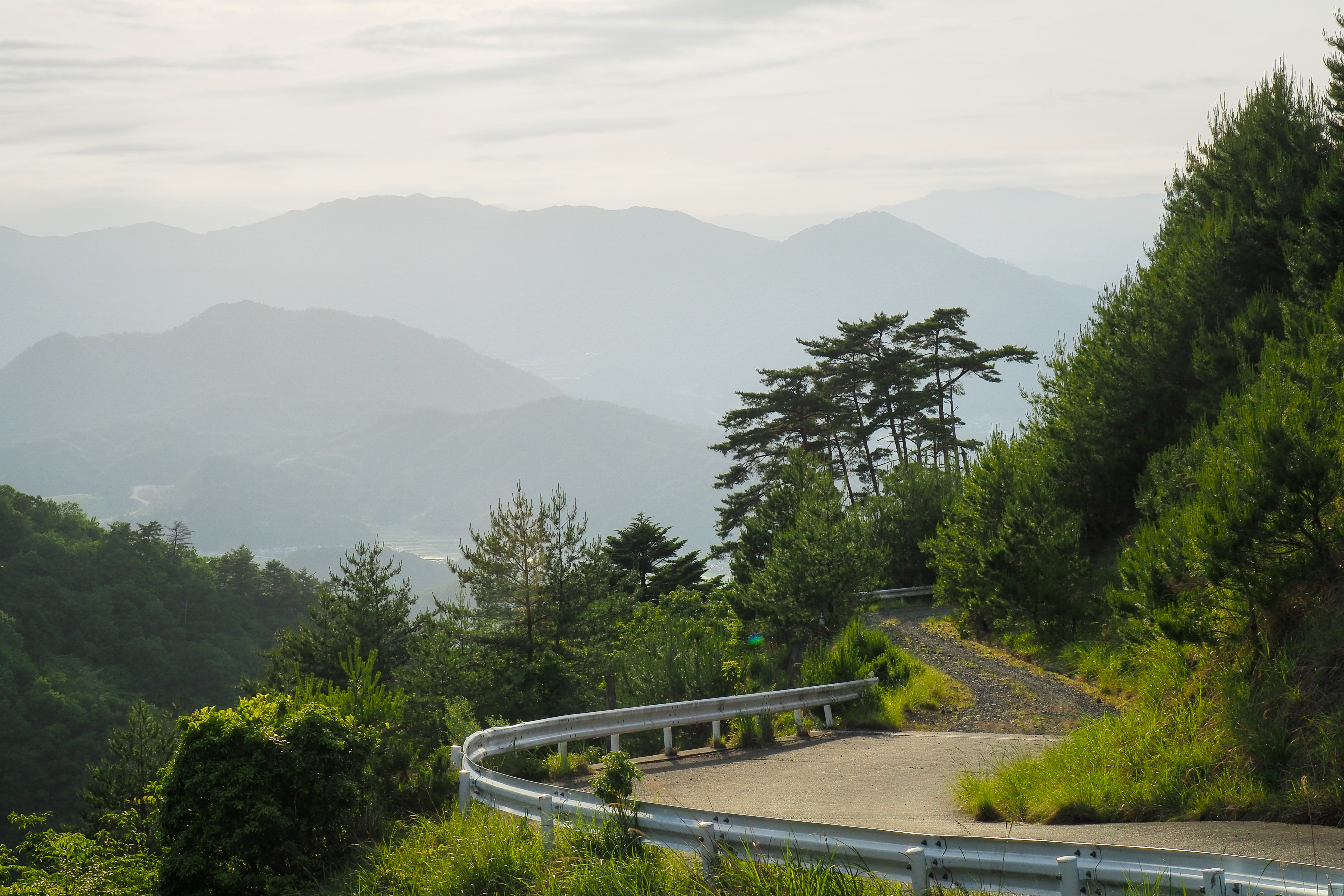 斜度は大体10%。この斜度になると砂利道では立ち漕ぎはできない。自分は割と立ち漕ぎを混ぜながら登りたいタイプなので、疲労が溜まった中、シッティング固定で上るのは結構辛かった。休憩を多めに取りながら、最悪無理なら引き返して下って播但線だなあ、などと思案しながら進んだ。